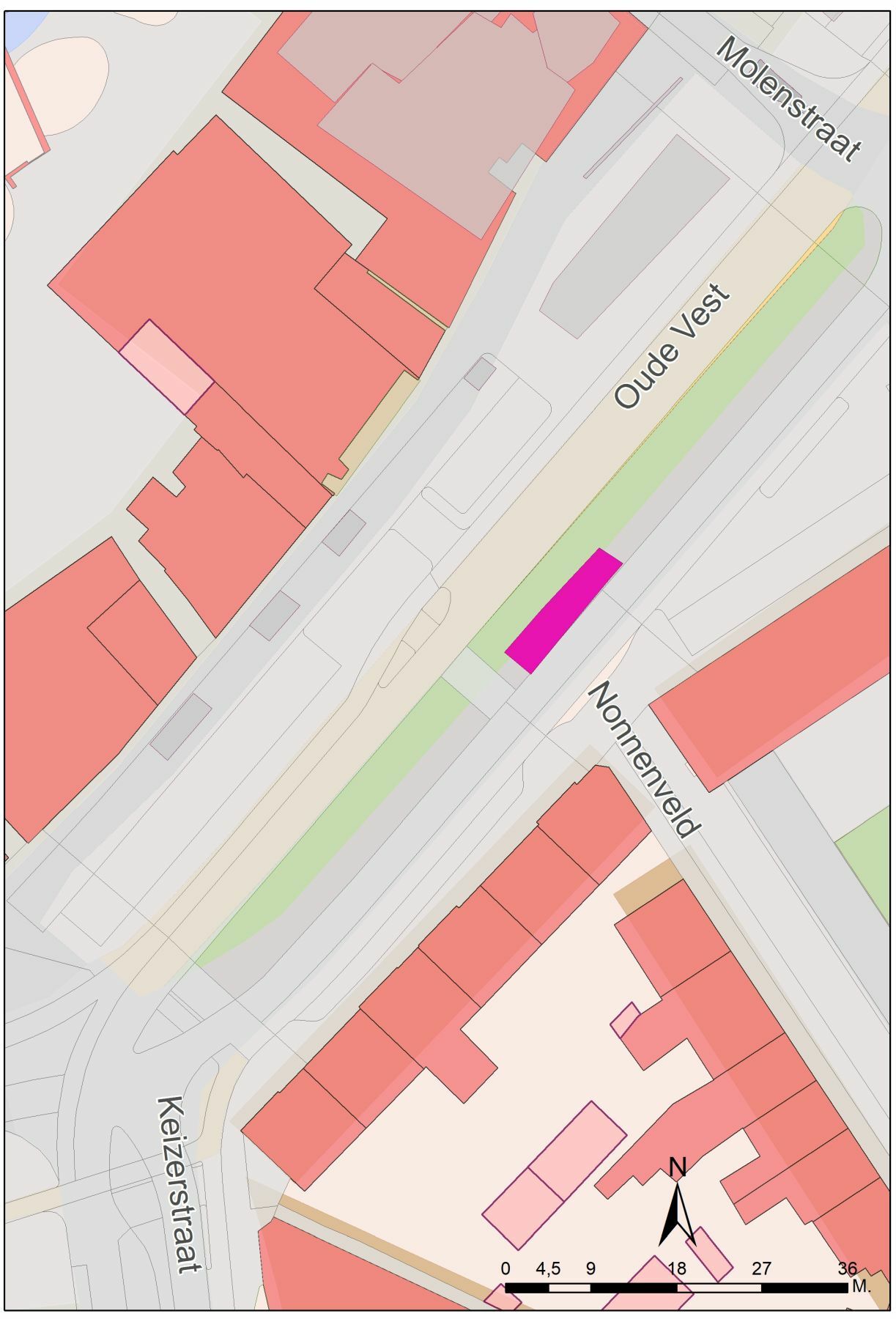De huidige brede verkeersweg op de Oude Vest (vest is afkomstig van vestingmuur of vestinggracht) is pas in de negentiende eeuw aangelegd. Voorheen lag hier de stadsgracht met aan de noordzijde een weg die ook de Oude Vest genoemd werd en aan de zuidzijde de Vingerhoedsstraat.